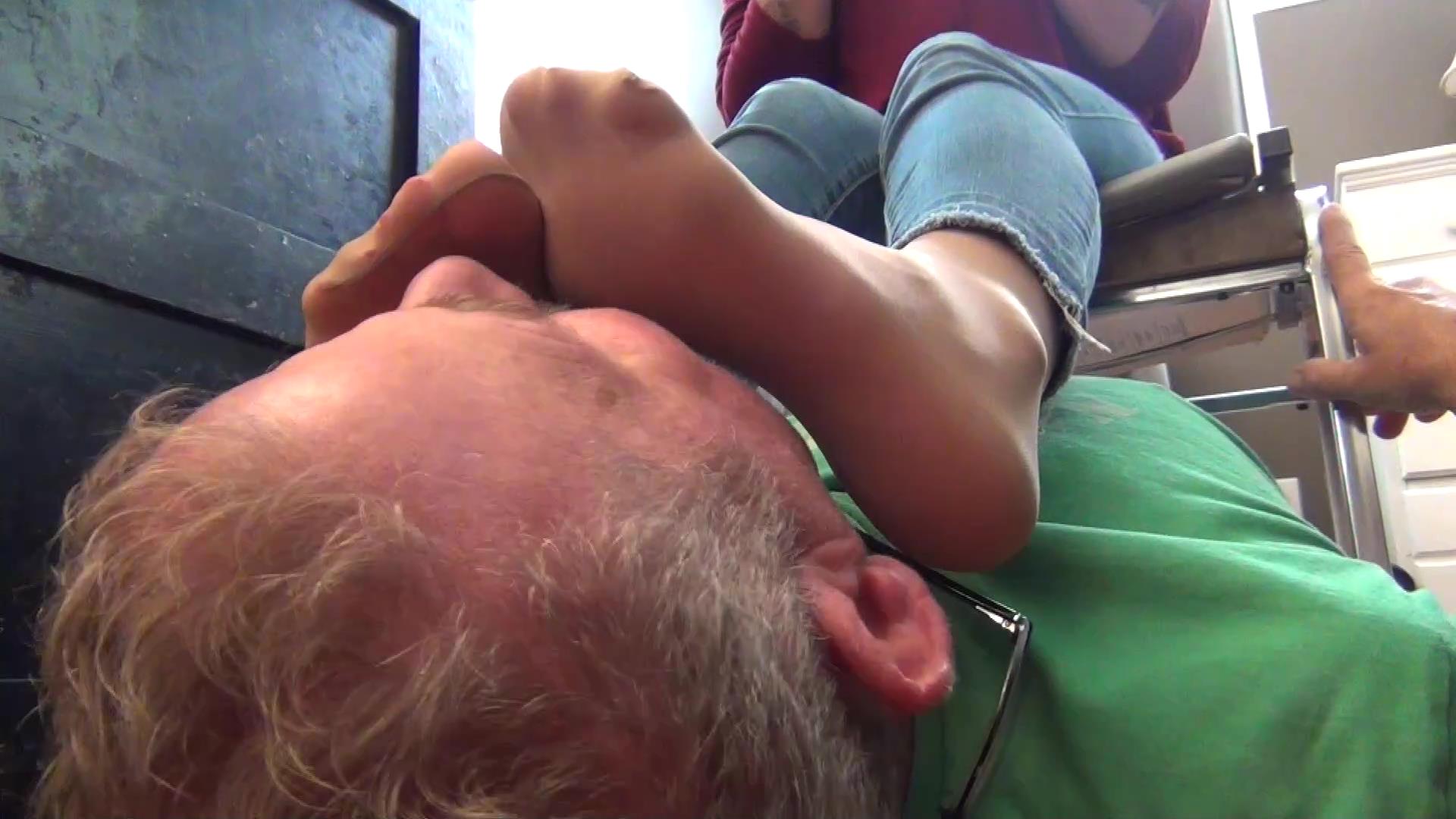 Mitzy is sitting at her desk, getting ready to start her day. She goes to power up her computer but it isn't working. She calls over the office repairman, and when he shows up and asks politely for her to leave the desk so he can get under there and fix it. She tells him no that he'll have plenty of room. So he gets under the desk and after a little bit of Mitzy dangling her feet in front of the repairmans face, she notice's him stairing at her feet. She threatens to call the boss and tell them that he is a pervert. She makes him kiss the bottom of her heels and lick them. She takes picture for proof and then takes one heel off, and makes him take her other heel off and smell both of them. Demanding each action that he takes. She licks the bottom of her pantyhosed feet, she's been wearing her heels all day and her feet are sweaty and stinky. She giggles and laughs about this as he complains. The repairman asks her to check the computer and make sure its working, and it is but she isn't finished with him yet! He licks and licks the bottom of her dirty feet for a good while until she tells him she is done with him, letting him know that shes going to be keeping those pictures, just in case! He leaves and sneaks out to Mitzy's vehicle while she finishes her shift, cutting her breaks. She really messed up this time! When she is done with all her work, she goes out to her car. Her breaks are all squishy and aren't working. After driving for awhiles she uses the e-break to stop her vehicle. She gets out, see's break fluid under her tire. She goes back to the car and pumps the breaks until help arrives.