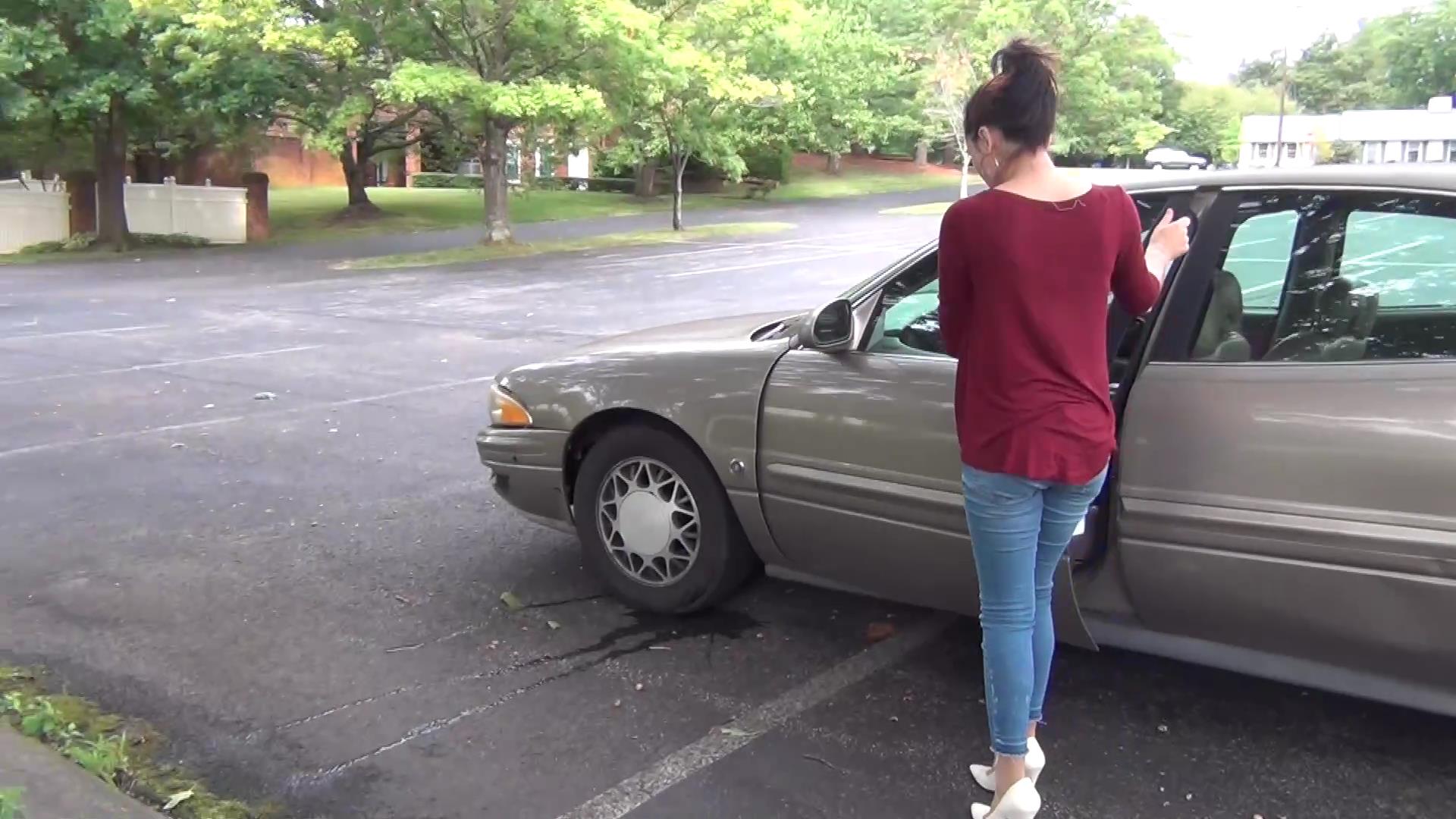 Mitzy is a sexy librarian who discovers that the library is being used to launder money and is secretly caught going through some records she shouldn't be looking at and while she is looking at the records someone sneaks over to her vehicle and cuts her break line. After Mitzy is done gathering the information she needs to report the situation, she goes to leave and head to the police station. She gets down the road and notices her breaks aren't working properly but she desperately needs to get to the police station, so she keeps on driving. The further she gets, the worse her breaks get and she begins freaking out. She gets as far as she can until she finally has to use her e-break and stop her car. She begins to pump and pump her breaks and call a mechanic. She's so upset, she gets them to come and check her breaks. She continues to pump her breaks until they show. The following day, Mitzy gets a call that her car was reported as tampered with, break lines cut. She is shocked! But she knows exactly whose to blame! They tell her that her car will be dropped off shortly. After the car is dropped off; while Mitzy is busy signing paperwork, the same person as the day before sneaks up to Mitzy's vehicle and cuts the break lines AGAIN and this time the accelerator as well! She sneaks away and Mitzy walks up to her car, so excited to have her car back! She drives for awhile, headed to complete her mission of reporting the library and notices that her breaks are acting up again. And her gas peddle is sticking! She begins freaking out, and after a good minute of not understanding and blaming the mechanic she comes to the conclusion that the library is to blame. She eventually has to pull over and use the e-break after a lot of break pumping. She immediately calls the police and reports her vehicle being tampered with, not once but twice. She pumps the breaks and is all upset, telling them there's a whole lot of important information she needs to report! Mitzy then waits there for the police to show, pumping her breaks.