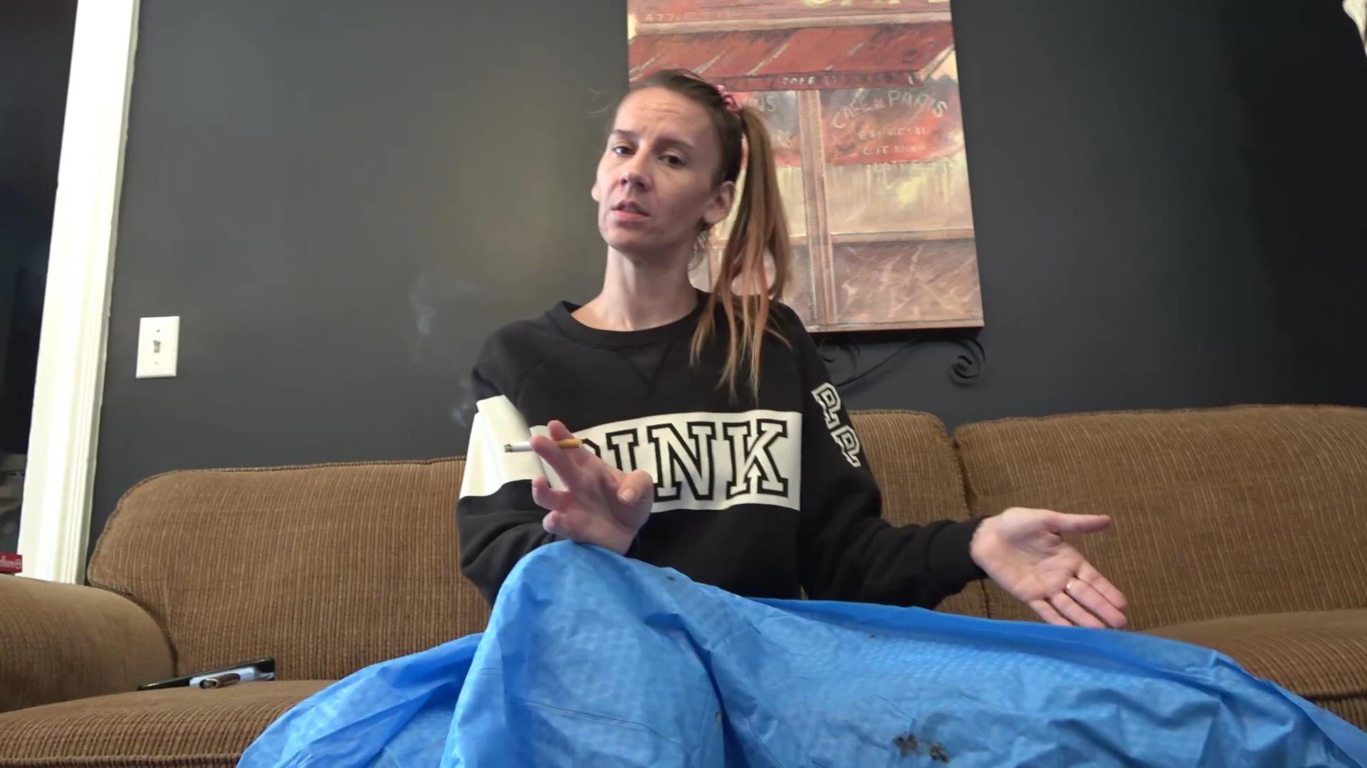 Riley and Vonlee come walking into the house when they both catch baby digging in the trash can for his nasty sticky raft! Mamma Riley is pissed and grandma Vonlee has had it with his disgusting behavior!! They jerk the raft away and have him follow them into the living room! They make him sit in the corner as they lay the raft across there laps and light up there cigarettes. They start scolding baby over his nasty habit as Mamma Riley threatens him with the belt! There so sick of him and his nasty sticky cum filled raft which he jerks off onto his precious raft! Grandma Vonlee tells him to stop sicking his thumb, hes a grown man and offers her tittys to suck on! They light up another cigarette as they start putting burn holes in it degrading him the whole time! Watch Vonlee and Riley scold baby hard over his raft fetish and sucking his thumb as they inhale there cigarettes blowing smoke at him!