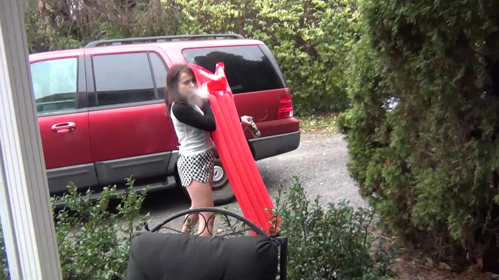 I got Savy to come over and smoke on the porch. She hasn't smoked in awhile and wanted to see if she could handles Reds. She did good with some nice inhales and coughing. Savy