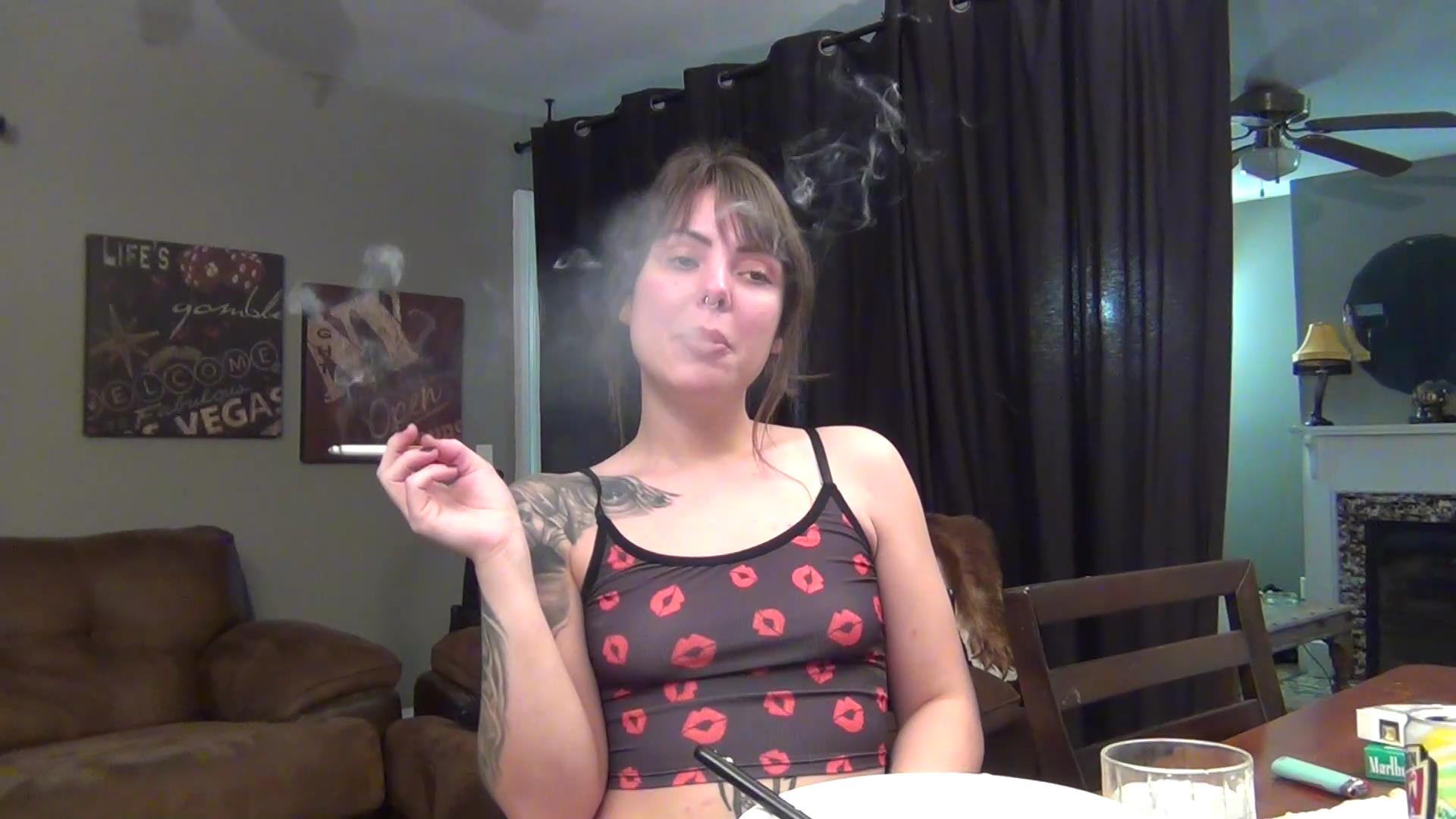Brynn is stuffed from her noodles that she just needs to blacken her beautiful lungs with a yummy and tasty red!